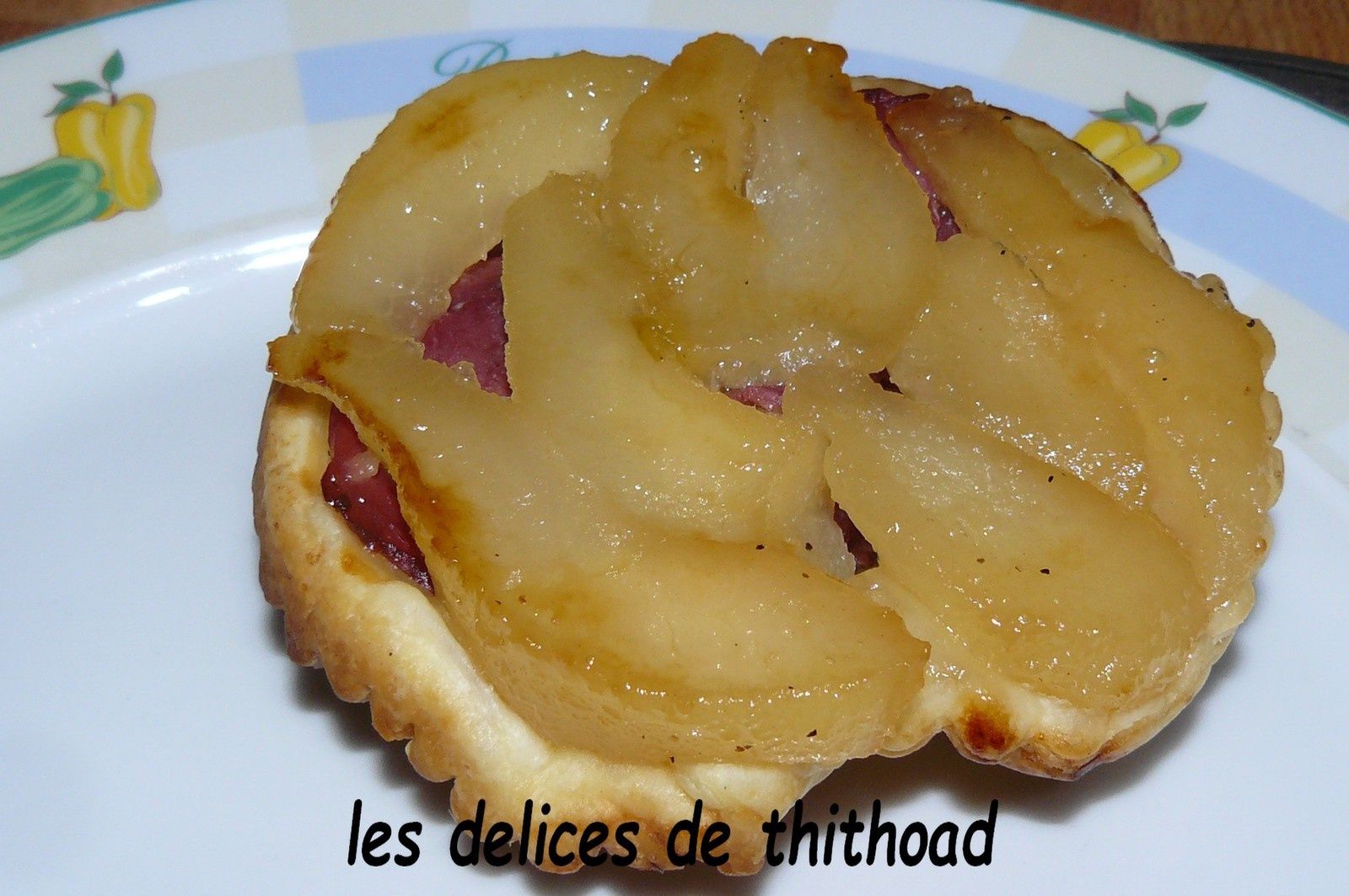 Déposer sur les poires des lamelles de magret.