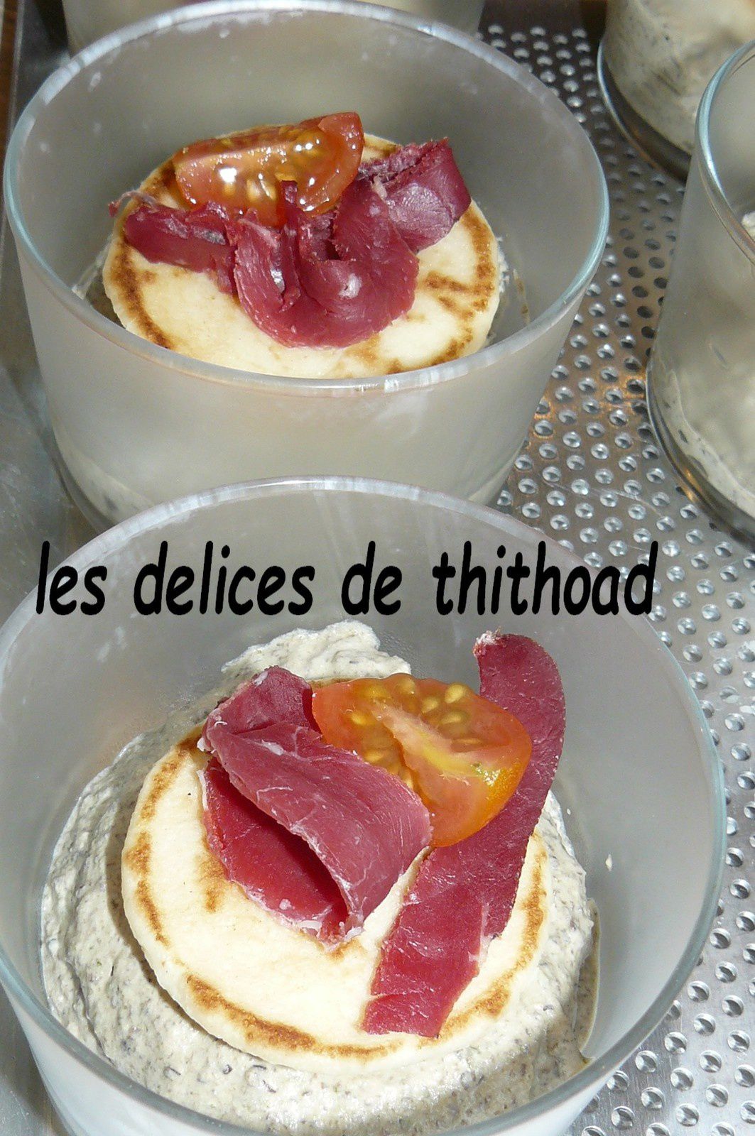 Déposer de la mousse d 'olives dans les verrines et laisser refroidir au frais 1 heure.
