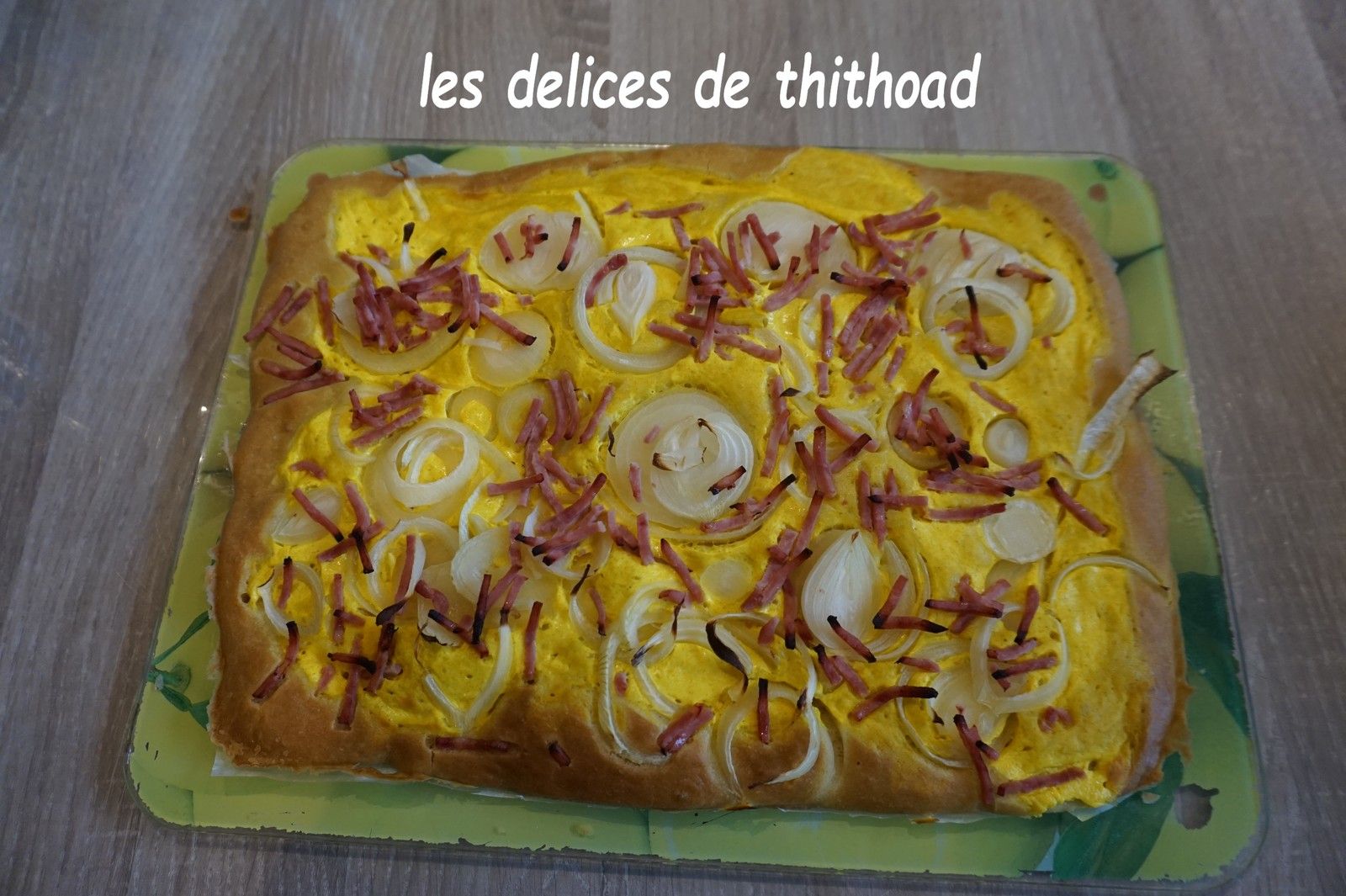 Couper les oignons en lamelles et les déposer sur la pizza.